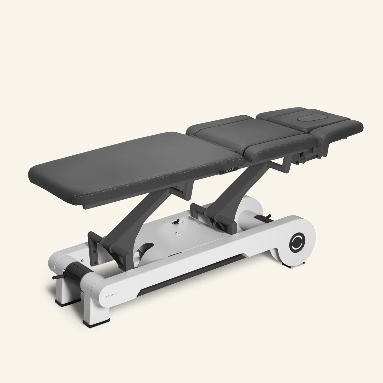 7-delige elektrische behandelbank met uitgebreide instelmogelijkheden voor optimale behandelingen en comfort. De bank heeft een driedelig hoofddeel met de gepatenteerde TwinLift-armsteunen. Standaard uitgerust met twee motoren: één om de hoogte te regelen en één voor de pli-verstelling — extra handig voor therapeut én patiënt. Dankzij de drie bladdelen is vrijwel iedere positie mogelijk: denk maar aan de Trendelenburg-positie, de pli-verstelling of de behandeling in zitpositie. De hoogte kan geregeld worden met een geïntegreerde kringschakelaar. De pli kan worden ingesteld door middel van schakelaars aan beide zijden. De onzichtbare wielen geven deze bank een sterke persoonlijkheid. Daarnaast is tafel voorzien van een XL-kussenverwarming en sfeer LED. De alleskunner van je praktijk.